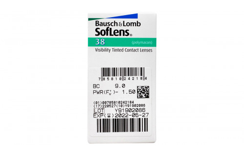 Made from a time-tested material with an ultra-thin design the Soflens 38 is the perfect easy to fit low water content lens. Featuring a low-thickness center for maximum oxygenation but with thicker edges for durability these lenses offer incredible comfort along with perfectly clear vision. Formerly called the Optima FW lens. These lenses are visibly tinted for ease of handling but will not change your eye color. Each box of Soflens 38 contacts contains six lenses in a buffered saline solution.