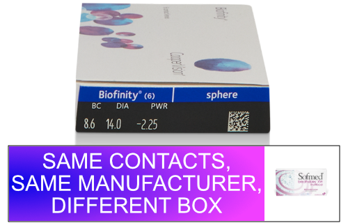 Sofmed Breathables XW MULTIFOCAL contact lenses are identical to Biofinity MULTIFOCAL contact lenses. Sofmed Breathables XW MULTIFOCAL contact lenses are manufactured by CooperVision. Orders will be filled with Biofinity Multifocal lenses.