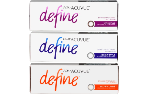 Don’t cover your eyes with colored contacts, complement them with 1-DAY ACUVUE DEFINE 30 pack contact lenses. Unlike many other cosmetic contacts these head-turning styles allow some of your eyes’ natural hue to peek through for a result that’s completely one of a kind. Thanks to subtle tinting these 1-day disposable lenses from Acuvue help to define and brighten your irises.