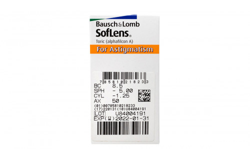 Astigmatism is a common eye problem that can cause blurry vision headaches and eyestrain. Caused by an odd curve to either your cornea or your lens this condition can be easily treated with the amazing Soflens Toric contact lenses. These lenses are easy to wear and offer superior all-day comfort as well as perfectly clear crisp vision. These lenses can be worn for one to two weeks before disposal. Each box of Soflens Toric contacts contains six lenses in a buffered saline solution.